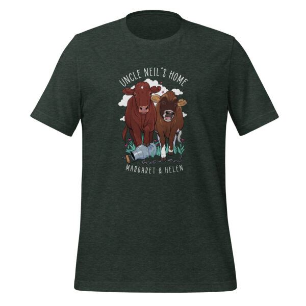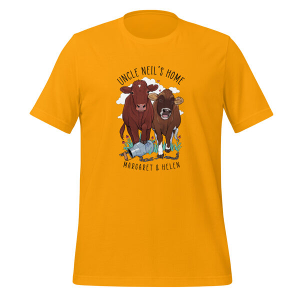 This shirt features Helen and Margaret who were both liberated from dairy farms and now live happily in sanctuary at Uncle Neil’s Home. They are best friends and true survivors. 100% of the proceeds from sales of this design go towards their ongoing care. Thank you for your support!